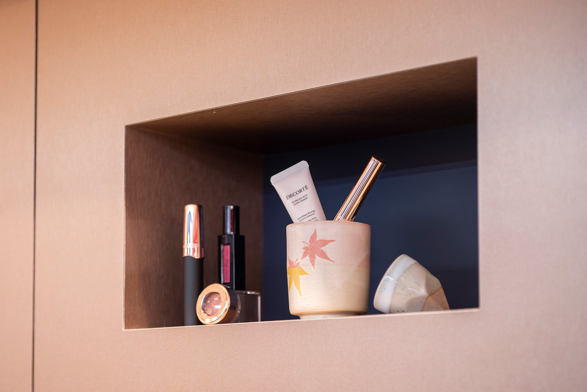 落ち着きのある和の空間で、花の器が新たなコスメとの出逢いのお⼿伝いをいたします。