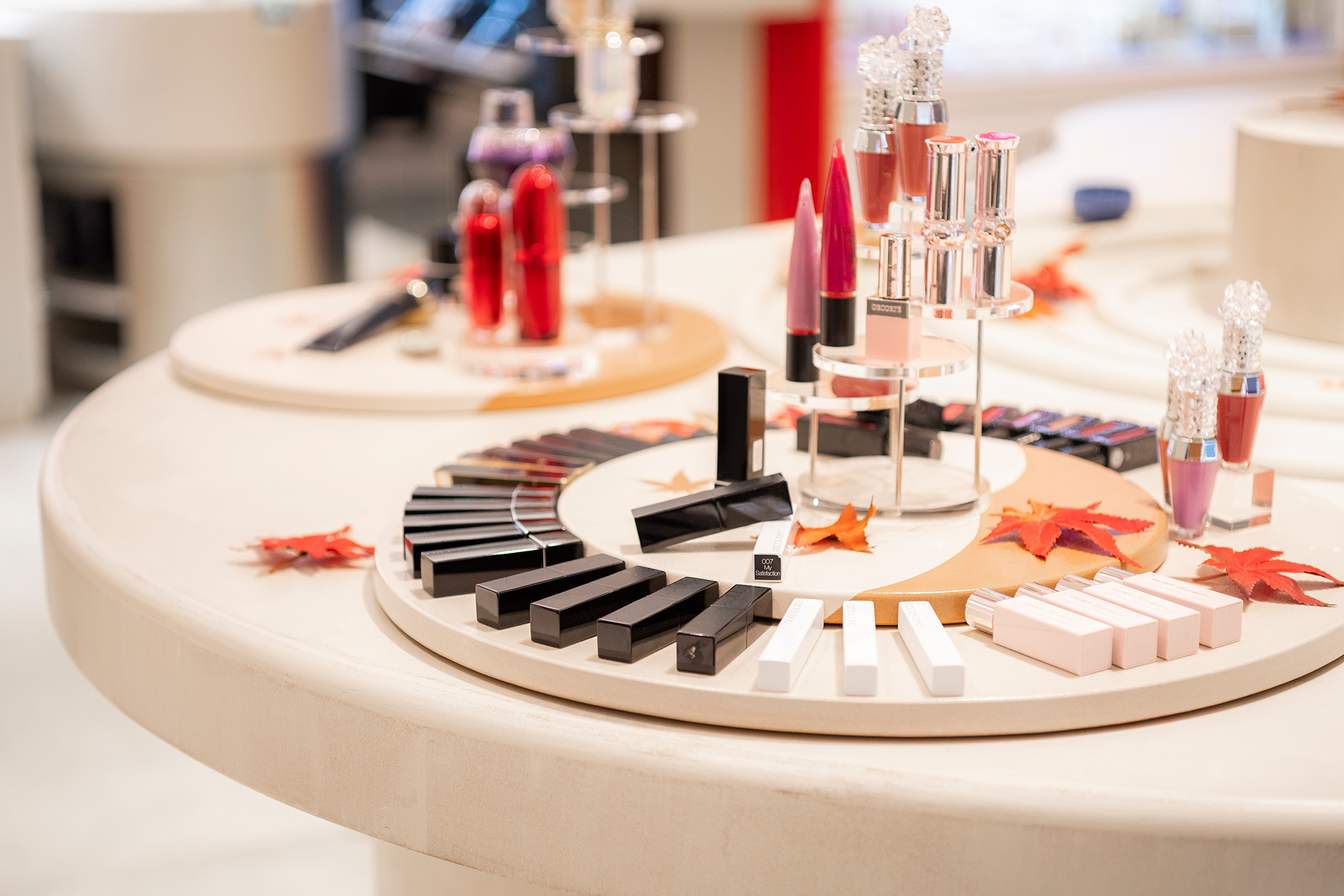 花の器ではトレンドメイクやスキンケア、フレグランスを実際に⾒て・触れて・⾹って、あなたにぴったりのアイテムをお選びいただけます。