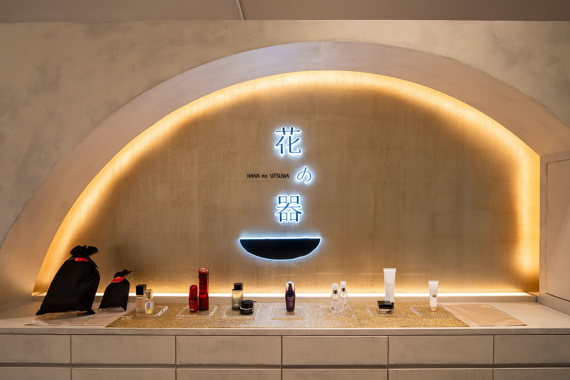 落ち着きのある和の空間で、花の器が新たなコスメとの出逢いのお⼿伝いをいたします。